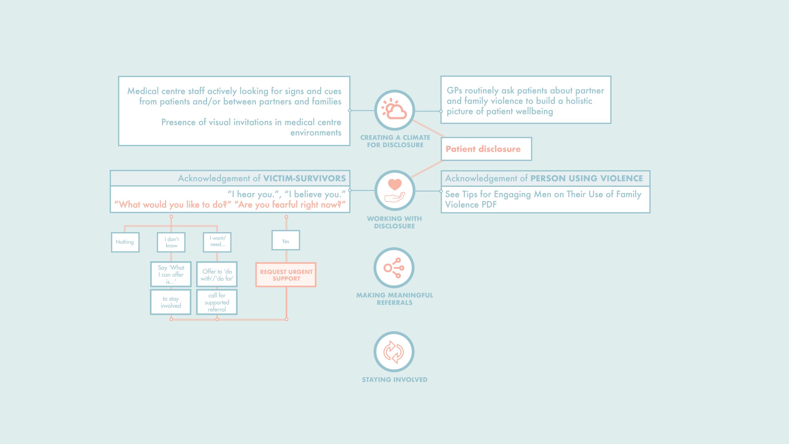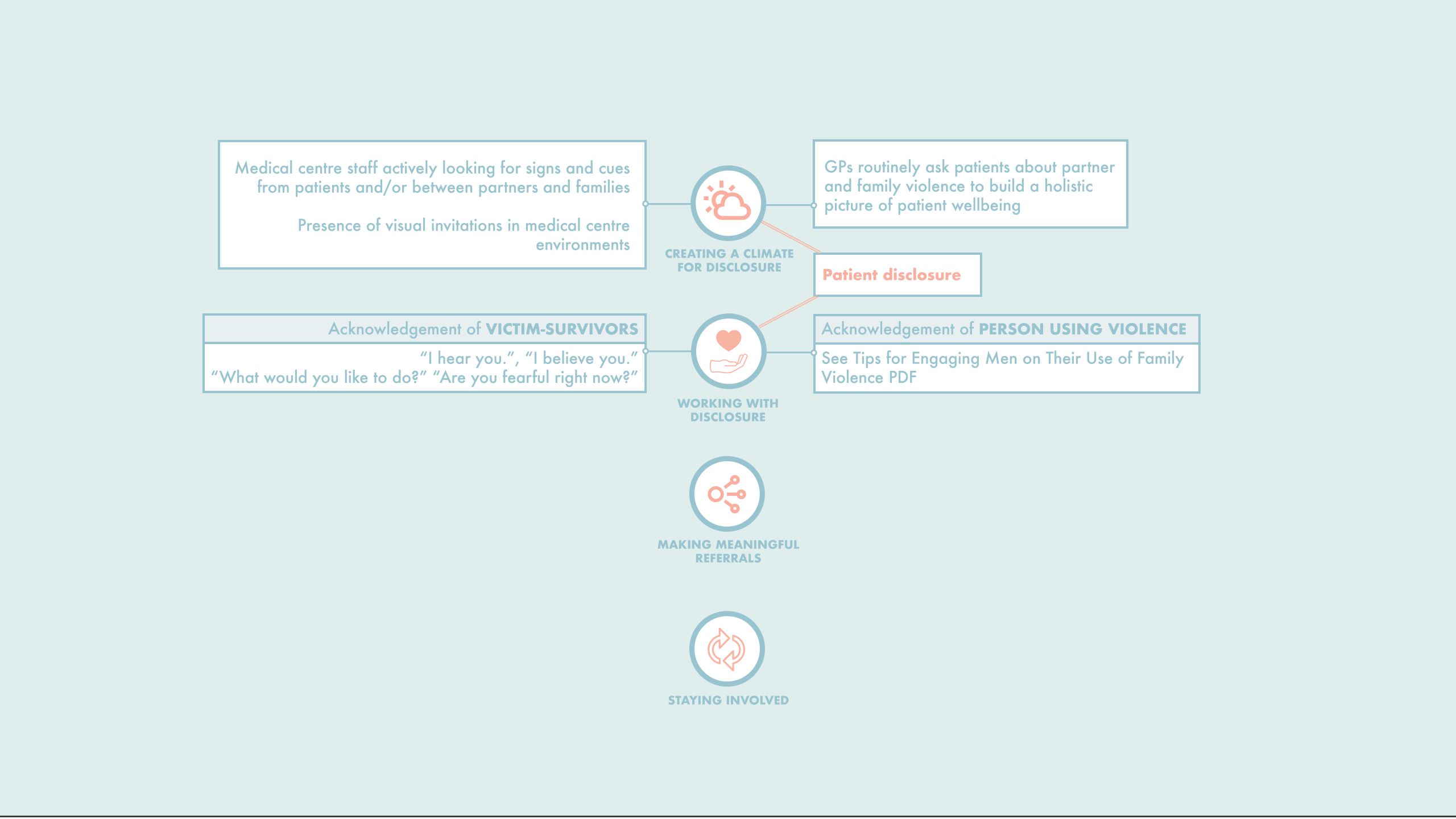 A supportive and professional response from a primary health care professional can reinforce a victim’s/survivor understanding that they are entitled to a healthy relationship and a life free from violence.