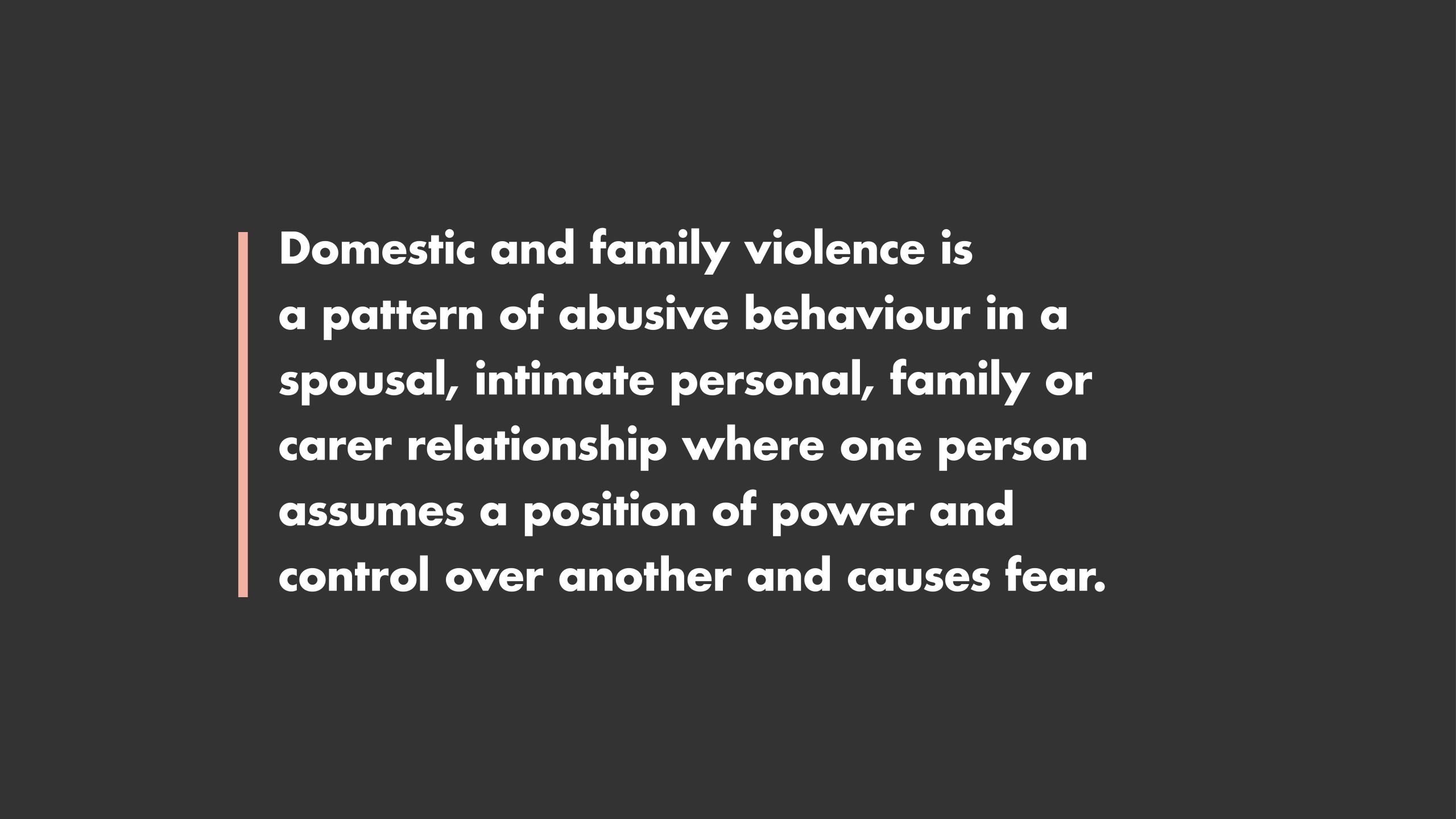 Domestic and Family Violence includes different types of abuse. It does not only mean physical abuse.